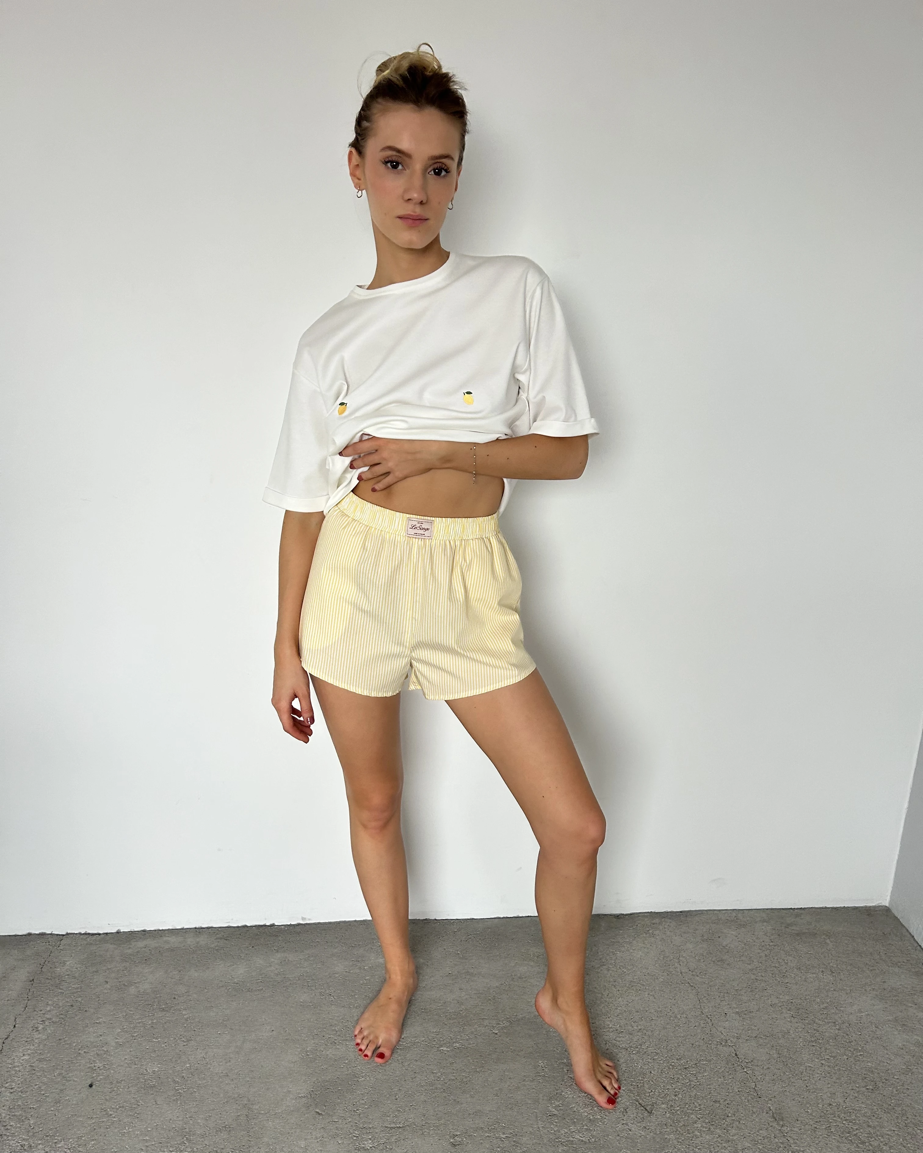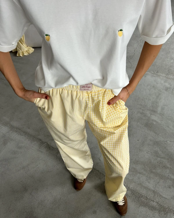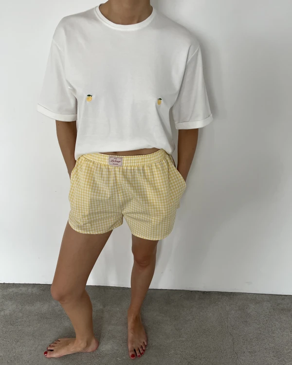 T-shirt Lemon to oversizowy model o prostym, swobodnym kroju, który łączy komfort z subtelnym detalem. Obniżona linia ramion nadaje mu luźny, nowoczesny charakter, a delikatny haft w cytrynki przyciąga uwagę i dodaje całości lekkości. Uszyty w 100% z bawełny od polskiego producenta z certyfikatem Oeko-Tex, zapewnia wygodę noszenia i przyjemność w dotyku. To codzienny basic z wyjątkowym akcentem.